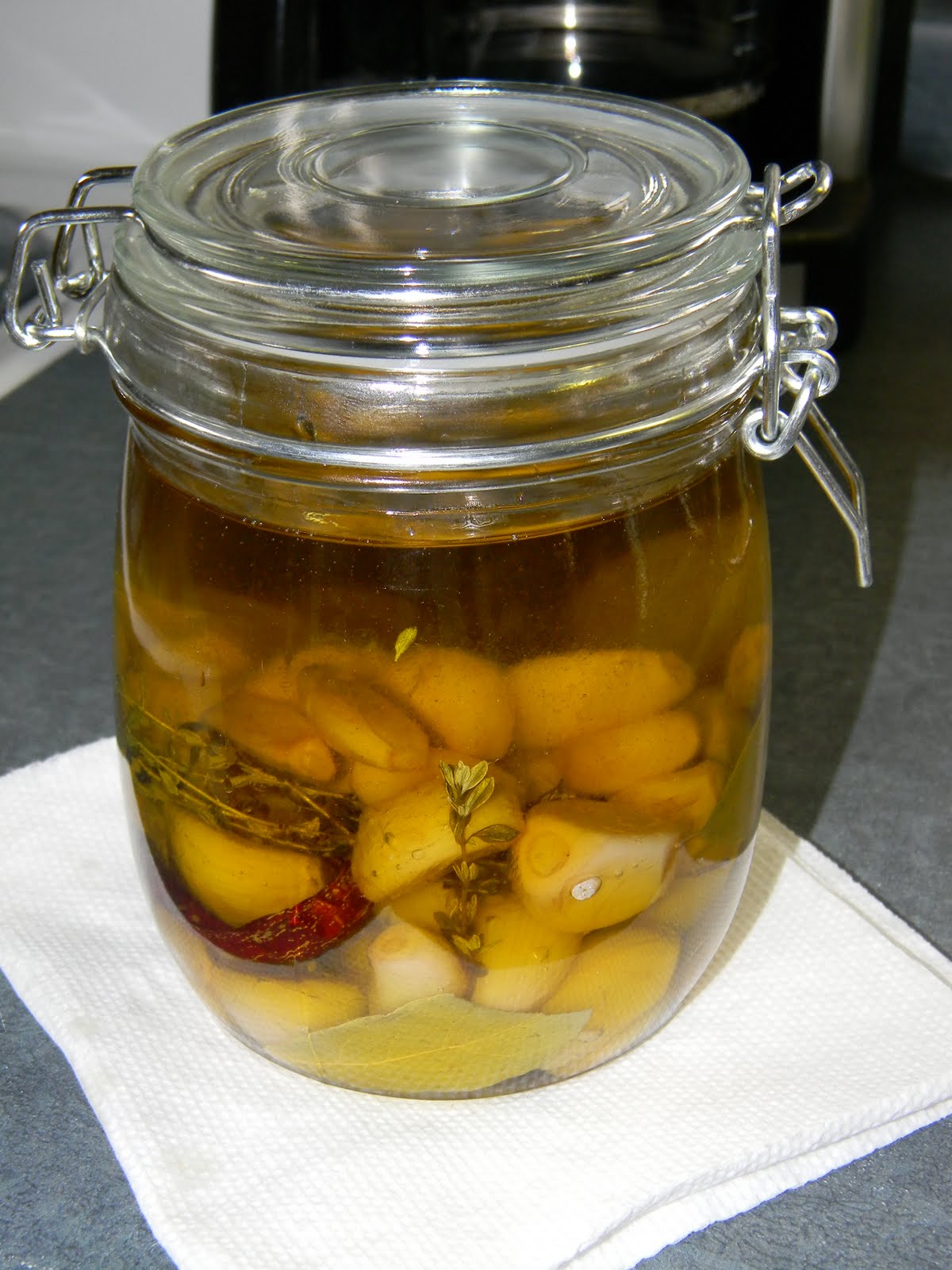 This takes about 30 minutes. Then use a slotted spoon to transfer the garlic, chilis and herbs into a canning jar and pour the cooking oil over top. Seal and refrigerate for up to 4 months. You can mash this into butter for a spread, mash into potatoes or use in roast chicken.